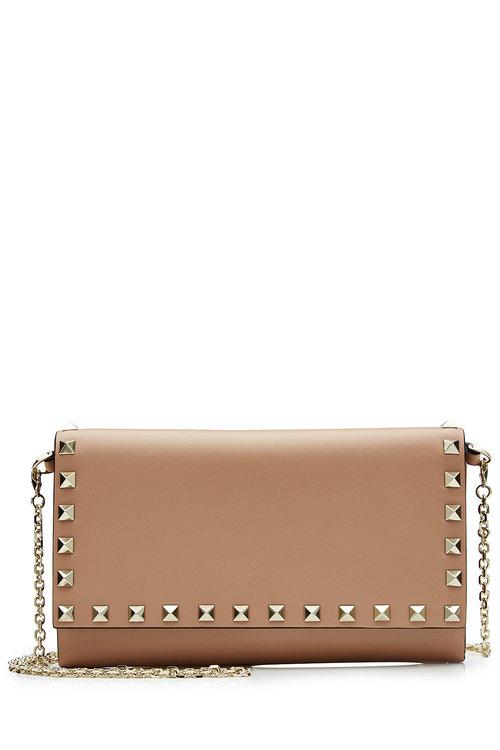 Valentino Rockstud Grainy Leather Wallet On Chain